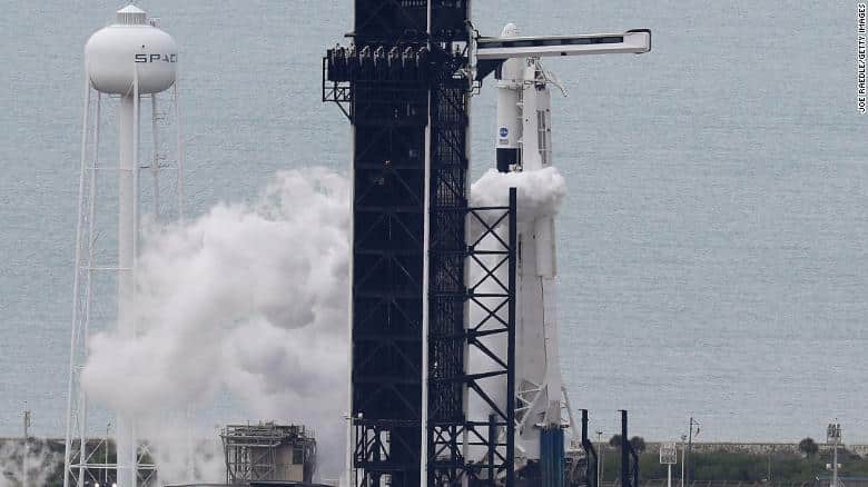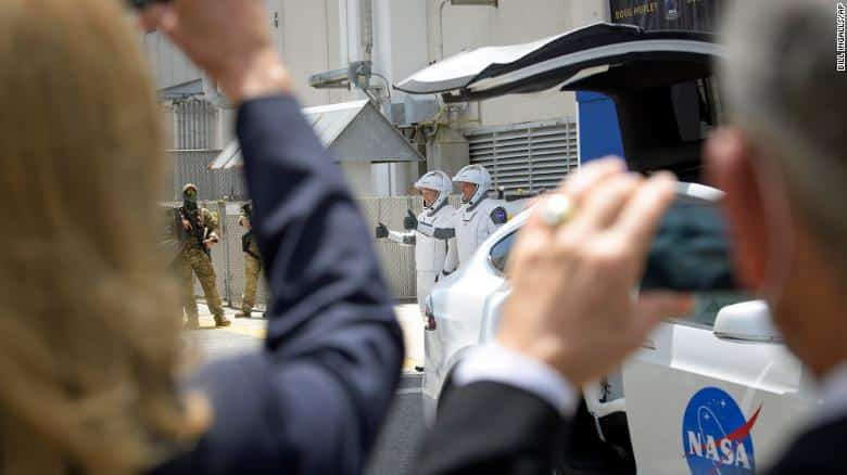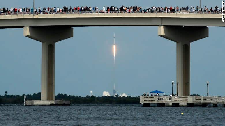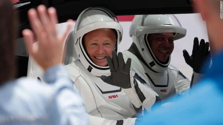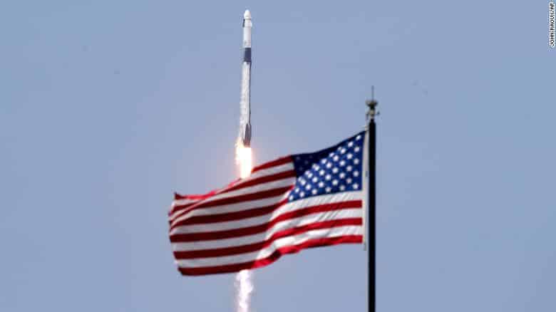 A decolagem ocorreu logo após as 15:20 ET (20:20 hora portuguesa) do Kennedy Space Center, na Flórida. Os astronautas Robert Behnken, 49, e Douglas Hurley, 53, passarão cerca de 19 horas a bordo da cápsula Crew Dragon da SpaceX, enquanto manobra lentamente em direção à Estação Espacial Internacional.